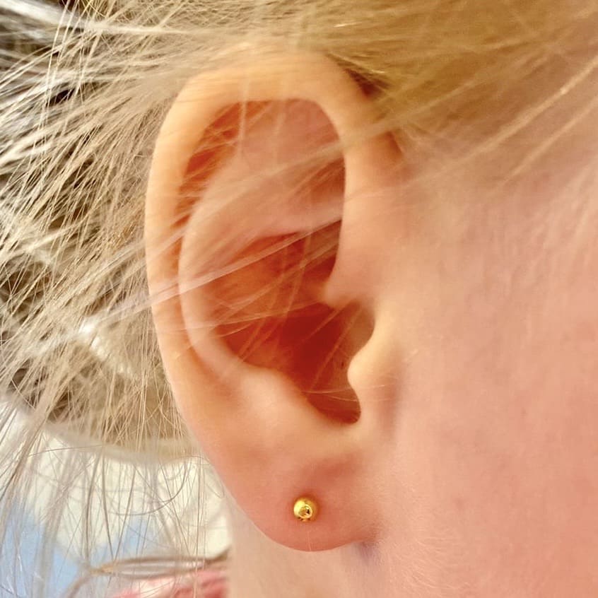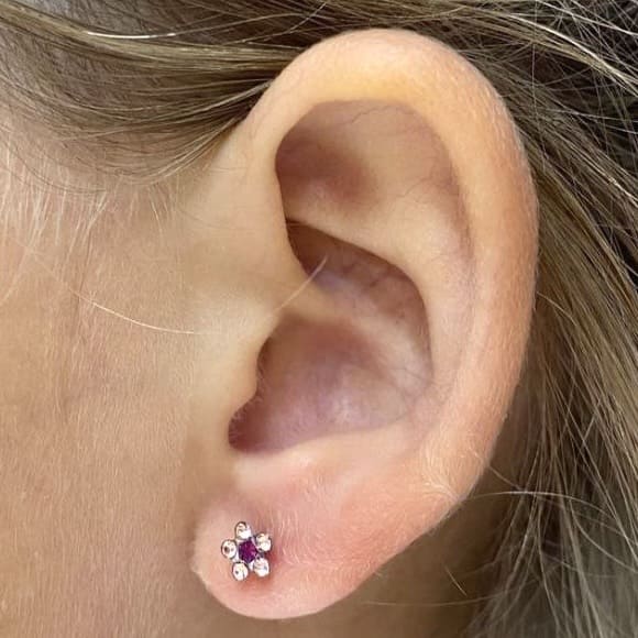 Мочку уха можно прокалывать с момента ее формирования. Обычно это происходит в возрасте - 6 месяцев, если к этому времени мочка сформирована, у нас можно проколоть ушки. Но только специальной серией System 75 baby. Эти сережки имеют укороченный штифт. Перед проколом наш косметолог тщательно проверит и точно скажет, можно прокалывать или нужно еще подождать.