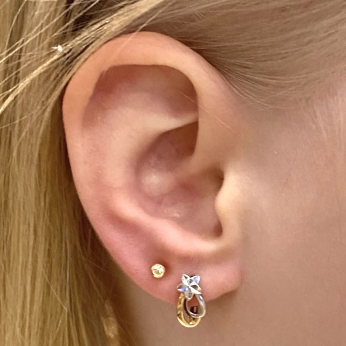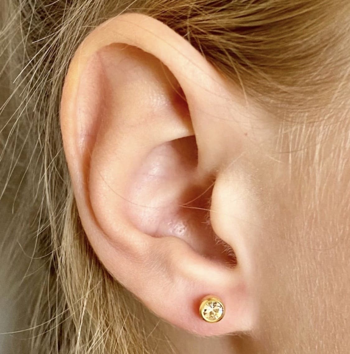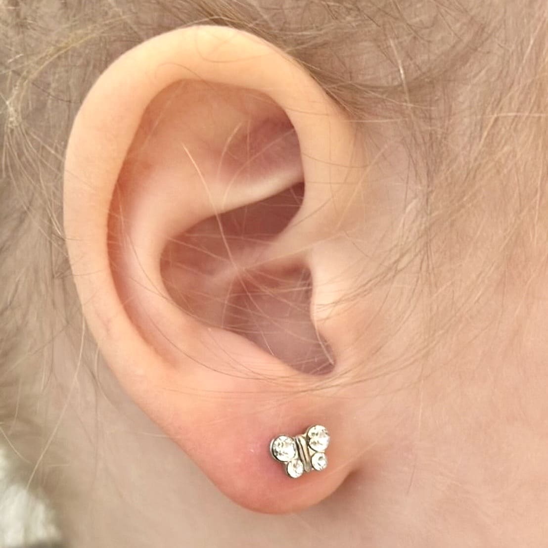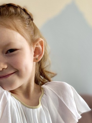 В System 75 есть специальная детская линейка серёжек для малышей с 6-ти месяцев - с укороченным штифтом, чтобы серьги удобно сидели на тонкой детской мочке уха.